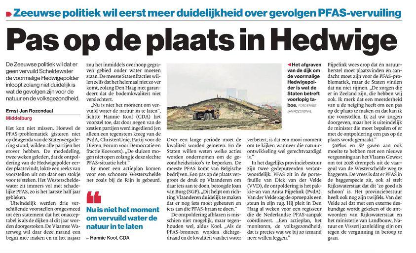We benadrukken dan ook met klem om de verzoeting van het Grevelingenmeer zo spoedig mogelijk ter hand te nemen. We staan wat betreft Zeeland immers met de rug tegen de muur. Er is genoeg zoet water voor Zeeland. Gebruik het! Sluit de kust en verzoet!